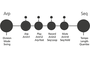 Realtime 512-step sequencer with quantize 4 × recordable/editable parameter automation lanes |